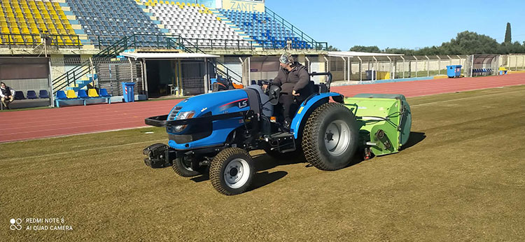 Η συγκεκριμένη εταιρία που ειδικεύεται μόνο σε αγωνιστικούς χώρους γηπέδων της Α΄ και Β’ Εθνικής ο  θέλει να κάνει σωστή δουλειά έτσι ώστε να μην υπάρξουν προβλήματα στο άμεσο μέλλον. Συγκεκριμένα έφερε δύο μηχανήματα, το ένα κόβει (ξυρίζει) το χόρτο και το άλλο το σκουπίζει και το μαζεύει. Το επόμενο στάδιο είναι να ανοίξουν τρύπες με άλλο μηχάνημα και μετά οριζόντια και κάθετα να πέσει ο σπόρος.