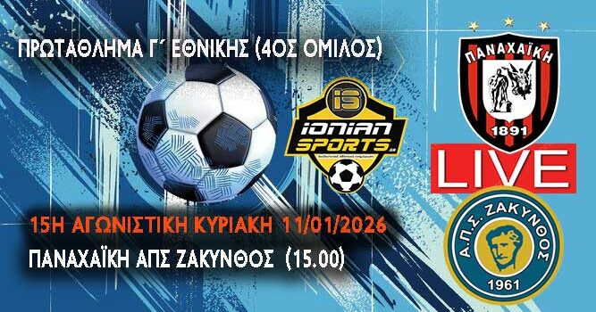 Το πρωτάθλημα του 4ου ομίλου της Γ΄ Εθνικής κατηγορίας εκκινεί και πάλι με την 15η αγωνιστική με την ομάδα της Ζακύνθου να αγωνίζεται εκτός έδρας στην Πάτρα με αντίπαλο την Παναχαϊκή στις 3 το απόγευμα της Κυριακής. Ματς “‘ένας μικρός τελικός” είναι αυτό που έρχεται ανάμεσα στην Παναχαϊκή και τη Ζάκυνθο. Ενα παιχνίδι που και