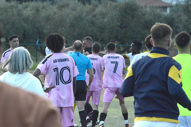 Δύο λεπτά αργότερα το ματς διακόπηκε καθώς επήλθε σύρραξή μπροστά από τον πάγκο του ΑΟ Λεβάντε και επικράτησε για 3 λεπτά πανδαιμόνιο καθώς παίκτες παράγοντες, των δύο ομάδων πήγαν να τινάξουν το ματς στον αέρα! εν τέλει μετά από λίγα λεπτά τα πνεύματα ηρέμησαν και το ματς συνεχίστηκε με την Θύελλα να είναι το απόλυτο αφεντικό στον αγώνα!