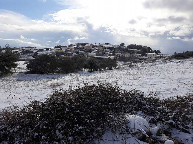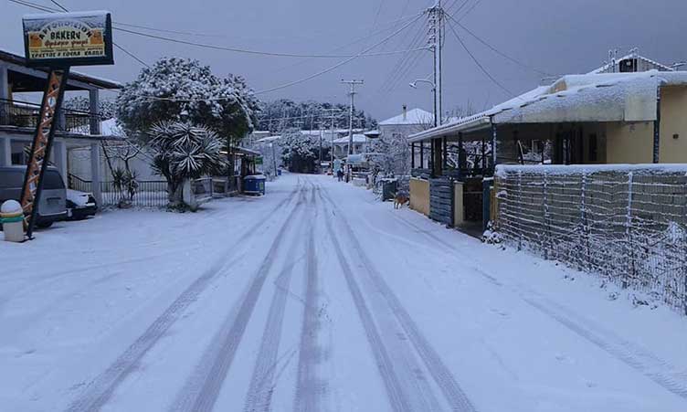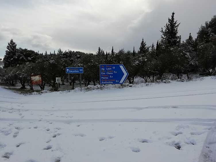 Στα λευκά ντύθηκαν από νωρίς τη νύχτα τα περισσότερα ορεινά χωριά της Ζακύνθου και από σήμερα το πρωί έχει διακοπεί η συγκοινωνία σε πέντε σημεία του επαρχιακού οδικού δικτύου.