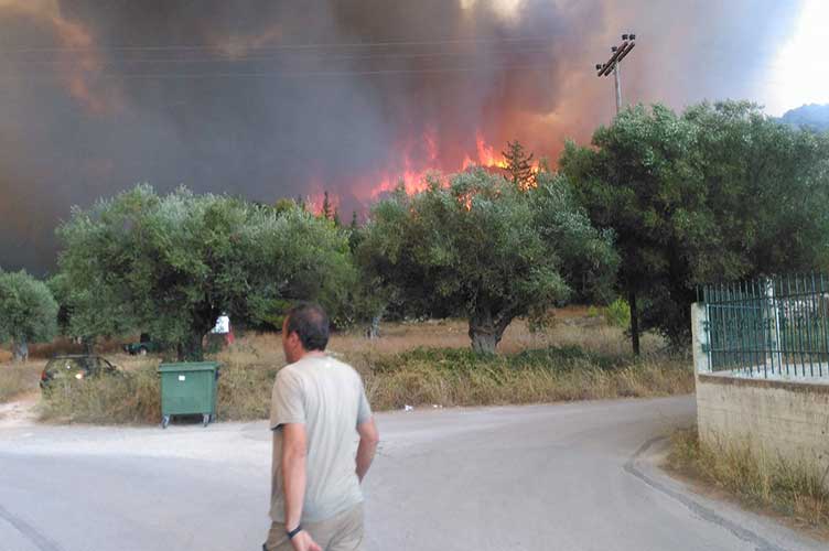 Οι κάτοικοι έχουν απομακρυνθεί ενώ εκείνοι των οποίων τα σπίτια δεν απειλούνται προς στιγμή πακετάρουν ότι μπορούν να περισώσουν από την περιουσία τους. Η φωτιά έχει περάσει πλέον και στην άλλη άκρη του χωριού και οι άνθρωποι είναι έτοιμοι να φύγουν από τα σπίτια τους με τις φλόγες να είναι στα λίγα μέτρα από τις αυλές των σπιτιών. Εν τω μεταξύ υπάρχει και ένα άλλο μέτωπο φωτιάς, αυτή την φορά πιο βόρεια στις Βολίμες