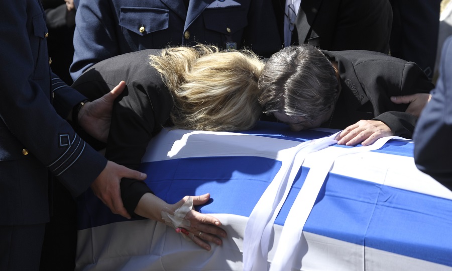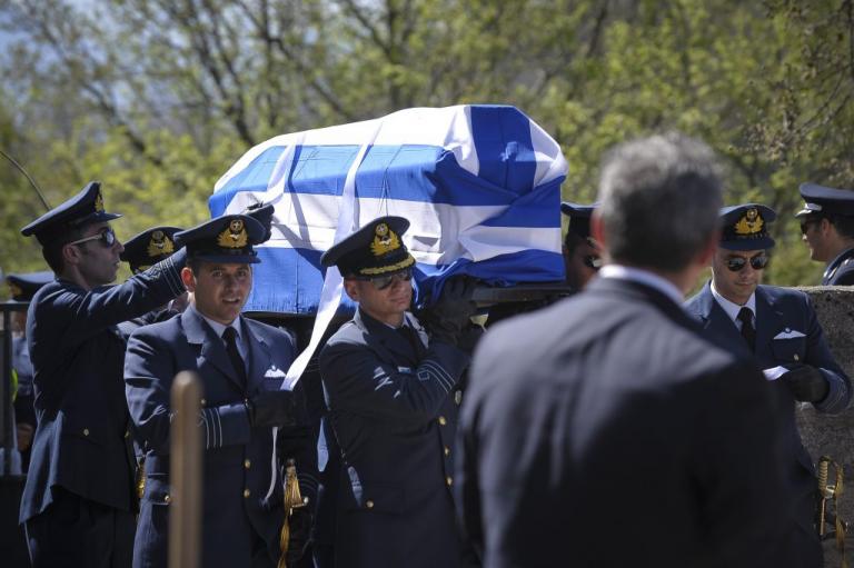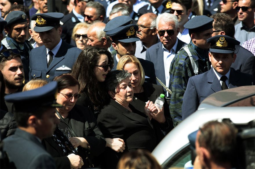 Τραγική φιγούρα στη νεκρώσιμη ακολουθία η μητέρα του πιλότου και η σύζυγος του.