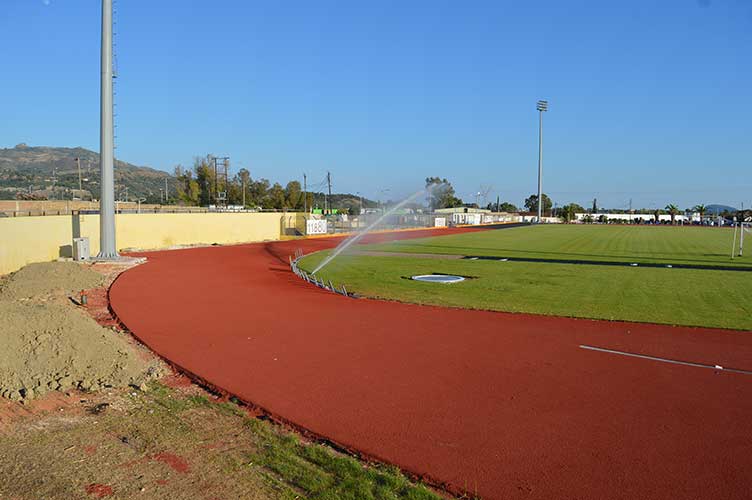 Οι βάσεις έχουν μπει για τα καλά και από εδώ και πέρα θα αρχίσουν να μπαίνουν οι τελευταίες πινελιές από την εργολήπτρια εταιρία. Ο τεχνητός τάπητας στίβου έχει σχεδόν ολοκληρωθεί, μόνο ένα μικρό κομμάτι απομένει. Από εκεί και πέρα την ερχόμενη εβδομάδα θα μπουν οι άσπρες γραμμές στίβου και θα είναι πλέον ένας τάπητας που θα το ζήλευαν πολλά στάδια στην περιφέρεια…
