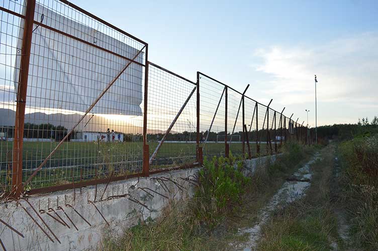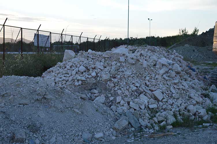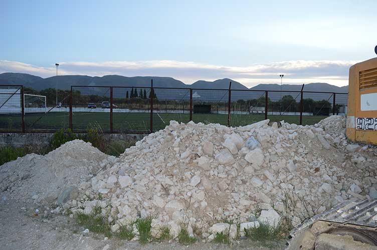 Δεκάδες κυβικά από χαλίκι ακριβώς δίπλα από την περίφραξη του γηπέδου!