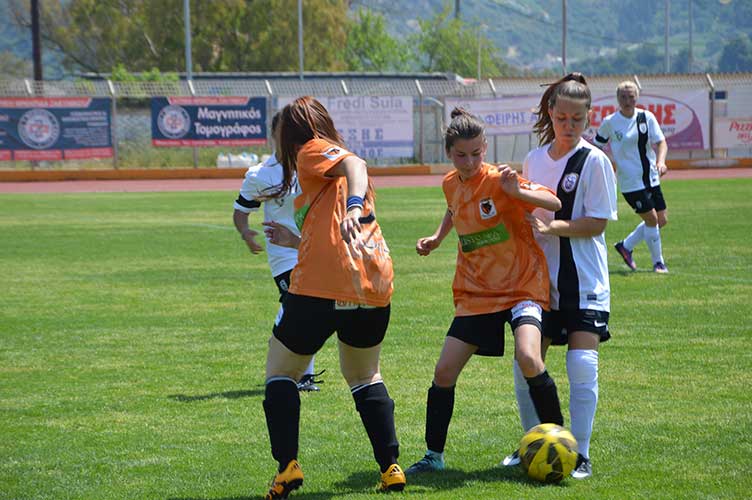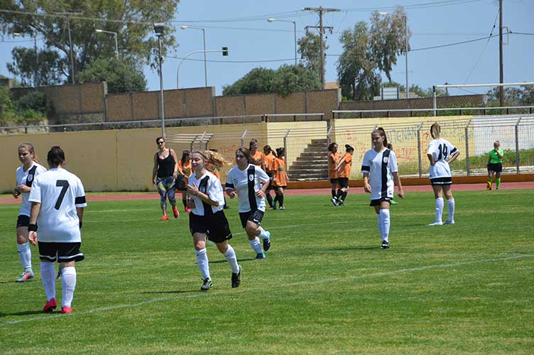 ”Χθες Κυριακή 29/4 η ομάδα μας έδωσε τον τελευταίο αγώνα για την φετινή σεζόν. Η ομάδα μας σε έναν ωραίο και ανοιχτό αγώνα , επικράτησε τις αξιόμαχης ομάδας των Λύκων Αιγιαλείας. Μάλιστα η ομάδα μας έκανε την τρίτη σερί νίκη όντος έδρας επί συνόλου 4 αγώνων, και οι τρεις νίκες με ανατροπή στο σκορ. Μάλλον δεν είναι τυχαίο. Η ομάδα των Λύκων Αιγιαλείας προηγήθηκε με ένα υπέροχο τεχνικό γκολ από την καλύτερη παίχτρια κατά την γνώμη μας φέτος στον 5ο όμιλο , την Αλεξία Παπαδοπούλου. Αυτή η κοπέλα είναι γεννηθείσα του 2000, άρα νεανίδες, καλό θα ήταν να προσεχθεί. Η ομάδα μας, μπήκε δυνατά στον δεύτερο ημίχρονο, και με ωραίες επιθετικές προσπάθειες κυρίως από την Βουτσινά , ισοφάρισε με την Αντιόχου, και επικράτησε με γκολ τις Μάλκοβα στο τελευταίο πεντάλεπτο του αγώνα.