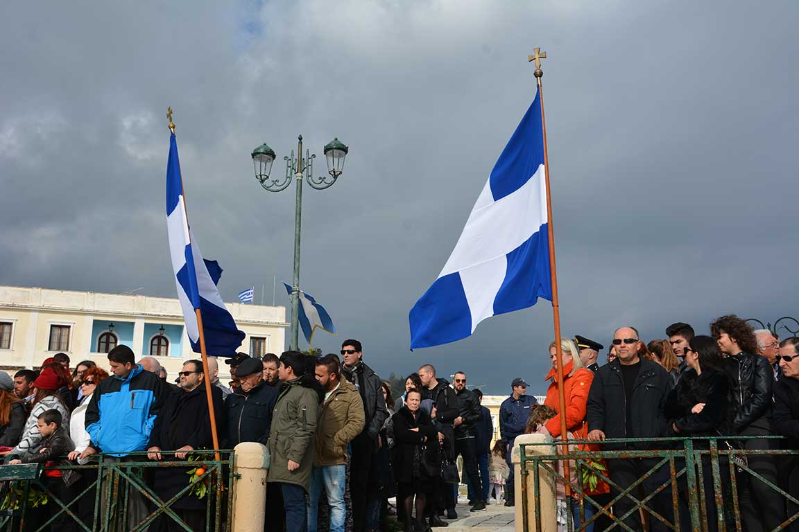 Σήμερα  Σάββατο 6 Ιανουαρίου, στις 8.30 το πρωί τελέσθηκε Αρχιερατική Θεία Λειτουργία στον Μητροπολιτικό Ναό του Αγίου Νικολάου και ακολούθως η Ακολουθία του Μεγάλου Αγιασμού. Στην συνέχεια, κατά τις 11.30 το πρωί, ξεκίνησε η Λιτανεία από τον Μητροπολιτικό Ναό προς την κεντρική αποβάθρα, όπου εκεί πραγματοποιήθηκε η τελετή  της  Καταδύσεως του Τιμίου Σταυρού στη θάλασσα και του Αγιασμού των Υδάτων. Πλήθος κόσμους πλημμύρισε την κεντρική αποβάθρα του λιμανιού για να παρακολουθήσει την τελετή, ενώ οι πιο γενναίοι βούτηξαν στη θάλασσα για να πιάσουν το Σταυρό και να προσκυνήσουν.