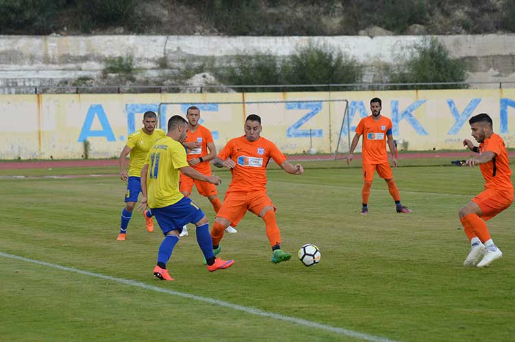 Το ματς πήγε όπως θα ήθελε η ζακυνθινή ομάδα. Δυνατό, με τους νησιώτες τακτικά να είναι άψογοι σε όλες τις γραμμές. Αλληλοκάλυψη και πολλά τρεξίματα αφήνοντας τον αντίπαλο κα κυκλοφορεί την μπάλα έως το κέντρο, χωρίς όμως να γίνεται επικίνδυνος μπροστά από την εστία του Δρακόπουλου. Η πρώτη μεγάλη ευκαιρία του παιχνιδιού ήταν για λογαριασμό των γηπεδούχων όταν ο Κάρδαρης με πάσα ακριβείας βρήκε τον Μεζίνι ο οποίος μπήκε από δεξιά , σούταρε με την μπάλα να περνά ελάχιστα άουτ από το δεξί κάθετο δοκάρι του Μπαμπανιώτη στο 28΄! Το γκολ δεν ήρθε σε αυτή την φάση και το παιχνίδι να είναι ισορροπημένο. Παιχνίδι υπομονής έδειχνε το συγκεκριμένο και όποιος έβαζε το γκολ θα κέρδιζε!