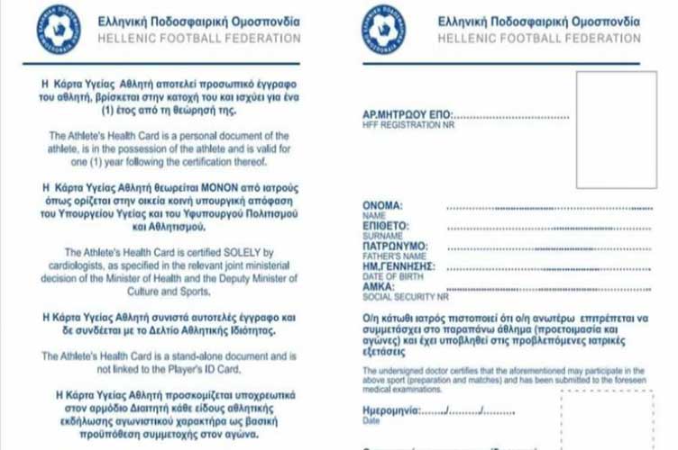 - Η πιστοποίηση υγείας των αθλητών καταγράφεται σε κάρτα υγείας, είναι υποχρεωτική και αποτελεί προϋπόθεση για την συμμετοχή τους σε προπονήσεις και αγώνες. Η ρύθμιση αφορά όλους τους ενεργούς αθλητές και αθλήτριες, όπως και τις νέες εγγραφές.