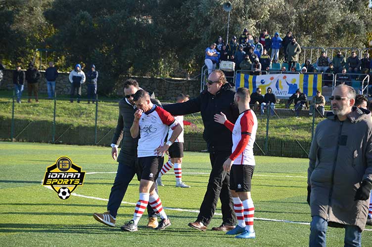 Ένα πολύ δυνατό ματς περίμεναν οι πολλοί φίλοι του ποδοσφαίρου που γέμισαν τις εξέδρες στο γήπεδο του Μαχαιράδου. Οι “απέναντι” ήταν κάμποσοι στην κερκίδα και έδωσαν το δικό τους “χρώμα”, δίνοντας παράλληλα “ώθηση” στους παίχτες της Ζακύνθου. Οι γηπεδούχοι μπήκαν πιο δυνατά στο πρώτο δεκάλεπτο, μέχρι το Τσιλιβή να ισορροπήσει στην συνέχεια. Το πρώτο εικοσάλεπτο κύλησε χωρίς ευκαιρίες αλλά στιγματίστηκε από τον τραυματισμό του Σάκη Γεωργίου στο κεφάλι, μετά από σφοδρή σύγκρουση με τον Μουκουτά στον αέρα. Είναι χαρακτηριστικό ότι ο παίχτης των φιλοξενούμενων έπεσε ξέρος στον αγωνιστικό χώρο, αφού δεν κουνιόταν καν! Προς το παρόν επικράτησε μεγάλη ταραχή καθώς συμπαίκτες και αντίπαλοι φώναξαν στο γιατρό του αγώνα να μπει εσπευσμένα μέσα, μιας και υπήρχαν ενδείξεις ότι χτύπησε στο κεφάλι και ότι του γύρισε η γλώσσα! Η επέμβαση των κ.κ. Φιλιππόπουλου, Μαλιούφα ήταν άμεση. Ο παίχτης βρήκε μετά από λίγο τις αισθήσεις του αλλά είχε χτυπήσει στο φρύδι (αιμορραγούσε) ενώ είχε και προσωρινή απώλεια μνήμης. Τελικά βγήκε εκτός τερέν για να πάρει τη θέση του ο Σόρα. Στην συνέχεια μεταφέρθηκε με ασθενοφόρο στο γενικό νοσοκομείο του νησιού “ΑΓΙΟΣ ΔΙΟΝΥΣΙΟΣ” για να του προσφερθούν οι πρώτες βοήθειες. Ένα ακόμη περιστατικό που αποδεικνύει περίτρανα ότι στο γήπεδο ΕΠΙΒΑΛΛΕΤΑΙ να υπάρχει έμπειρος καταρτισμένος γιατρός. Αλλιώς η κακή στιγμή δεν αργεί να γίνει και μπορεί να αποβεί μοιραία. Ευτυχώς ο άνθρωπος γλίτωσε τα πολύ χειρότερα…