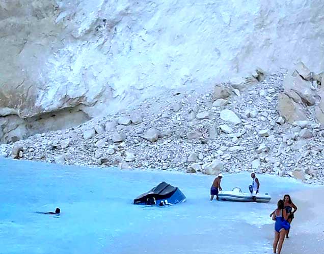 Σοκ εχει προκαλέσει στο νησί της Ζακύνθου και όχι μόνο η κατολίσθηση βράχων στο Ναυάγιο όπου οι πρώτες πληροφορίες κάνουν λόγο για τρεις τραυματίες καθώς ανατράπηκαν μέσα στην θάλασσα 3 βάρκες και αγνοούνται 3 τουρίστες.