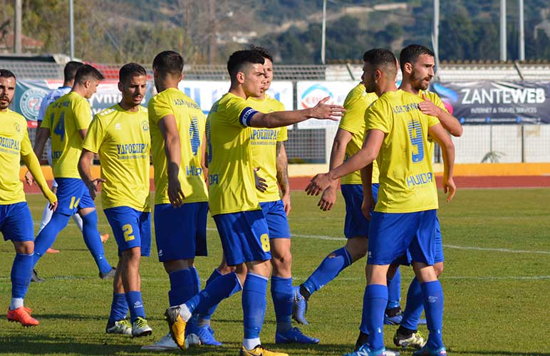 Από την μια οι γηπεδούχοι που ήθελαν πάση θυσία τη νίκη και από την άλλη οι φιλοξενούμενοι που βρέθηκαν στο Τζάντε για να παίξουν και να φύγουν με ψηλά το κεφάλι όπως και έκαναν φυσικά. Από το πρώτο λεπτό οι γηπεδούχοι ανέλαβαν την πρωτοβουλία των κινήσεων και μετέφεραν την μπάλα στην περιοχή του Κατσαούνη. Στο 8΄ η πρώτη καλή στιγμή για τον ΑΟΚ Ζακύνθου. Ο Καψάσκης θα κάνει όμορφη ενέργεια από τα δεξιά θα ντριμπλάρει τον αντίπαλό του, στον κατάλληλο χρόνο θα σπάσει την μπάλα στο Πέττα εκείνος θα στρώσει στον Κάρδαρη που θα επιχειρήσει το σουτ με την μπάλα να περνά άουτ.