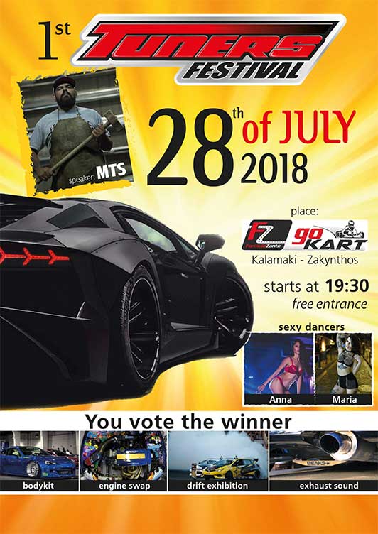 Ένα special event με πολλές εκπλήξεις για τους συμμετέχοντες και όσους το παρακολουθήσουν θα διεξαχθεί στο νησί της Ζακύνθου το Σάββατο 28 Ιουλίου. Συγκεκριμένα στην πίστα Formula Zante Go Kart στο Καλαμάκι θα λάβουν μέρος στο 1ο Tuners Festival διαγωνιζόμενοι βελτιωμένων αυτοκινήτων και μοτοσυκλετών!